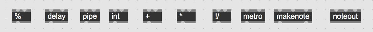 Handige objecten: [int]/[message], [+], [makenote], [noteout]