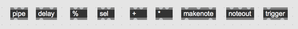 Maak een sequencer die met 1 druk op een button een willekeurige akkoordprogressie genereert door enkele noten in een lijst op te slaan en deze vervolgens af te spelen en via jouw algoritme omzet in akkoorden. Voeg ook ritmische patronen toe aan de sequencer. Gebruik hiervoor: [uzi], [urn]/[random]/[drunk], [zl.group], [zl.lookup]